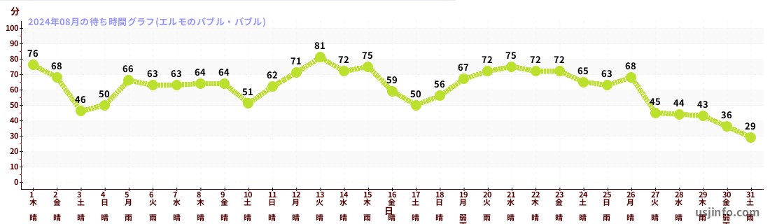 • エルモのバブル・バブル$B$N(B2024年08月01日のの一日平均待ち時間