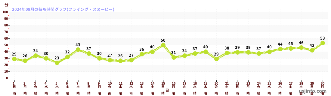 • フライング・スヌーピー$B$N(B2024年09月01日のの一日平均待ち時間