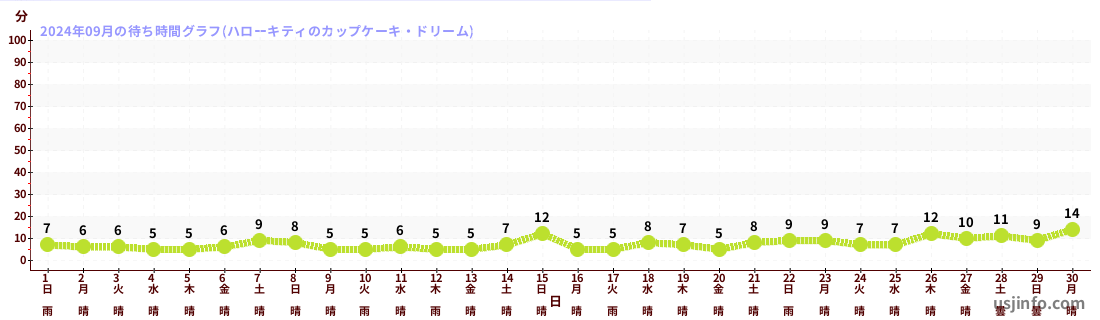 • ハローキティのカップケーキ・ドリーム$B$N(B2024年09月01日のの一日平均待ち時間