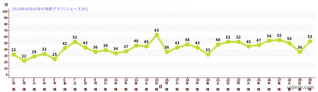 • ジョーズ(R)$B$N(B2024年09月01日のの一日平均待ち時間