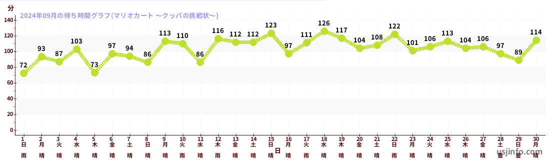• マリオカート ~クッパの挑戦状~$B$N(B2024年09月01日のの一日平均待ち時間
