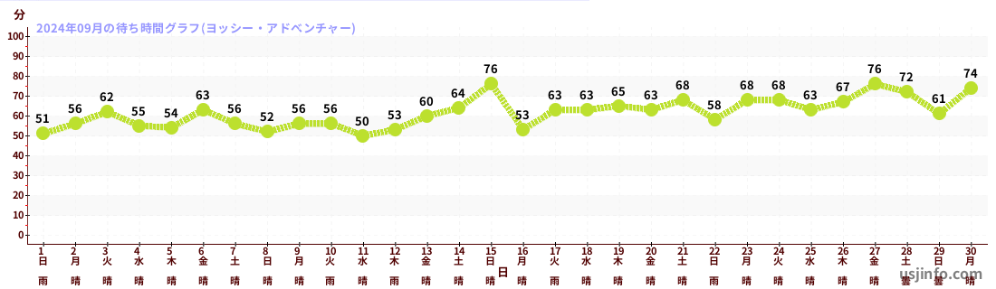 • ヨッシー・アドベンチャー$B$N(B2024年09月01日のの一日平均待ち時間
