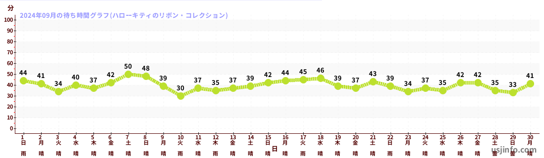 • ハローキティのリボン・コレクション$B$N(B2024年09月01日のの一日平均待ち時間