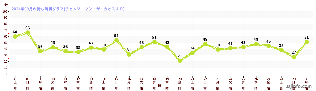 • チェンソーマン・ザ・カオス 4-D$B$N(B2024年09月01日のの一日平均待ち時間