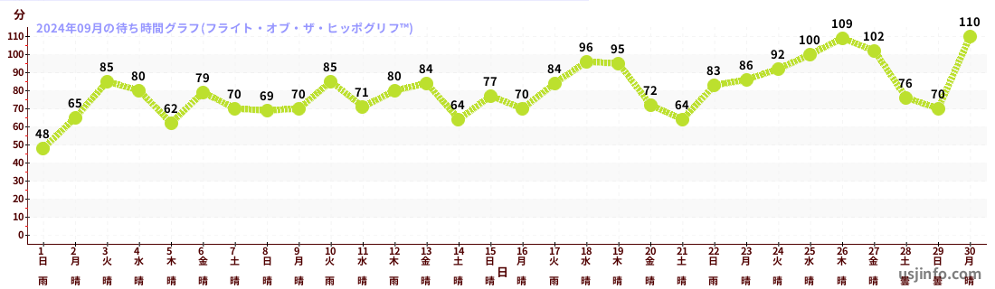 • フライト・オブ・ザ・ヒッポグリフ™$B$N(B2024年09月01日のの一日平均待ち時間