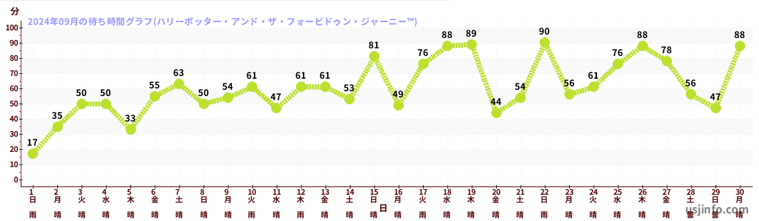 • ハリーポッター・アンド・ザ・フォービドゥン・ジャーニー™$B$N(B2024年09月01日のの一日平均待ち時間