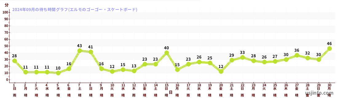 • エルモのゴーゴー・スケートボード$B$N(B2024年09月01日のの一日平均待ち時間