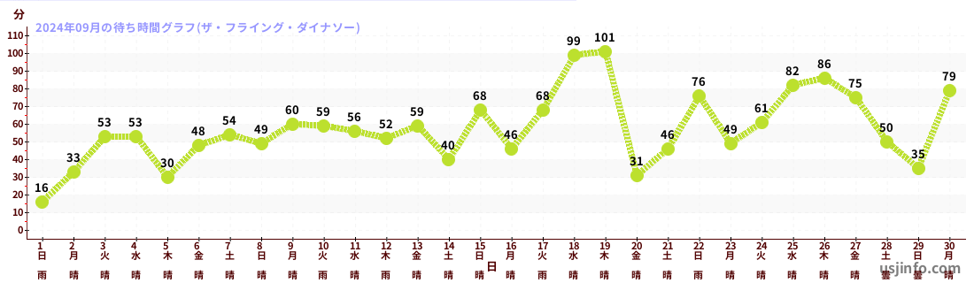 • ザ・フライング・ダイナソー$B$N(B2024年09月01日のの一日平均待ち時間