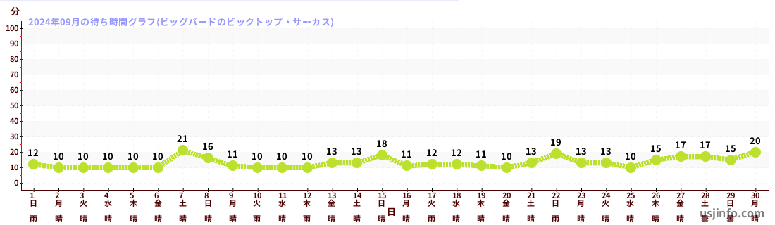 • ビッグバードのビックトップ・サーカス$B$N(B2024年09月01日のの一日平均待ち時間