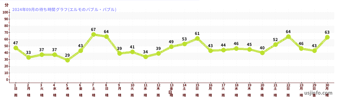 • エルモのバブル・バブル$B$N(B2024年09月01日のの一日平均待ち時間