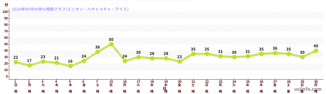 • ミニオン・ハチャメチャ・アイス$B$N(B2024年09月01日のの一日平均待ち時間
