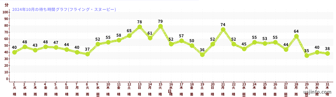 • フライング・スヌーピー$B$N(B2024年10月01日のの一日平均待ち時間