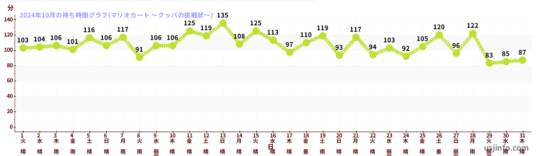 • マリオカート ~クッパの挑戦状~$B$N(B2024年10月01日のの一日平均待ち時間