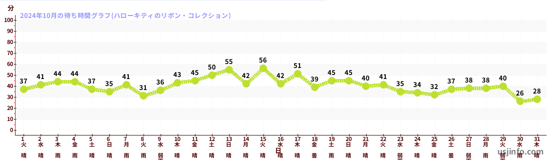 • ハローキティのリボン・コレクション$B$N(B2024年10月01日のの一日平均待ち時間