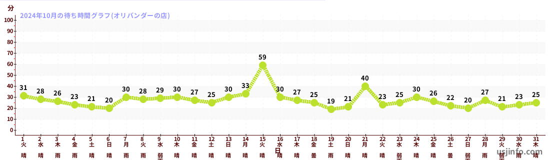 • オリバンダーの店$B$N(B2024年10月01日のの一日平均待ち時間