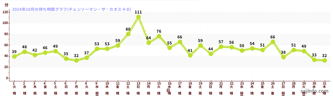 • チェンソーマン・ザ・カオス 4-D$B$N(B2024年10月01日のの一日平均待ち時間
