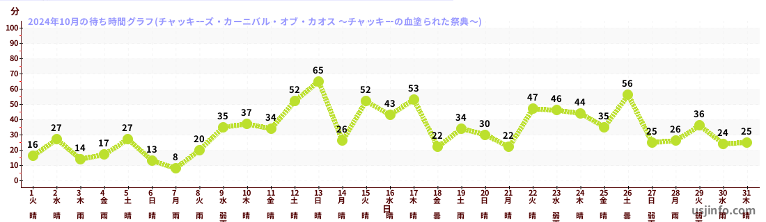 • チャッキーズ・カーニバル・オブ・カオス ~チャッキーの血塗られた祭典~$B$N(B2024年10月01日のの一日平均待ち時間