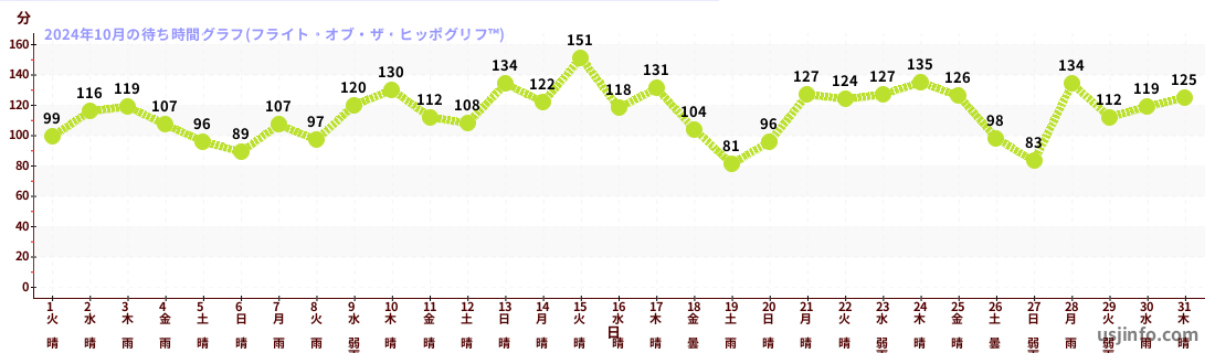 • フライト・オブ・ザ・ヒッポグリフ™$B$N(B2024年10月01日のの一日平均待ち時間