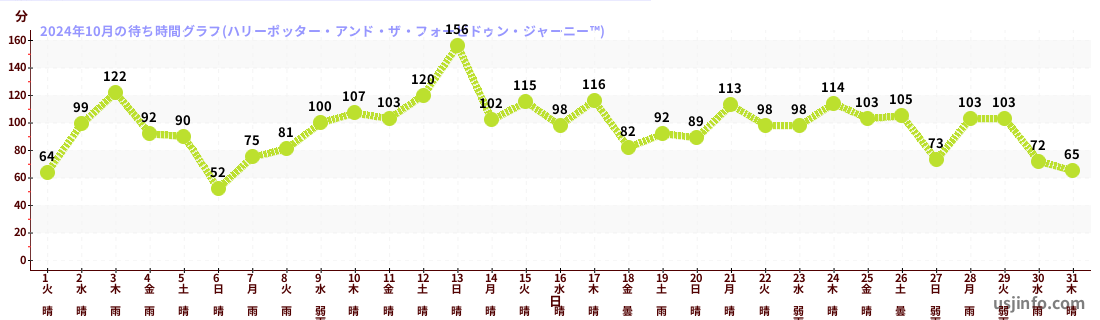 • ハリーポッター・アンド・ザ・フォービドゥン・ジャーニー™$B$N(B2024年10月01日のの一日平均待ち時間