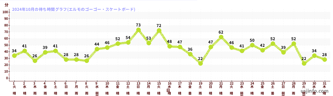 • エルモのゴーゴー・スケートボード$B$N(B2024年10月01日のの一日平均待ち時間