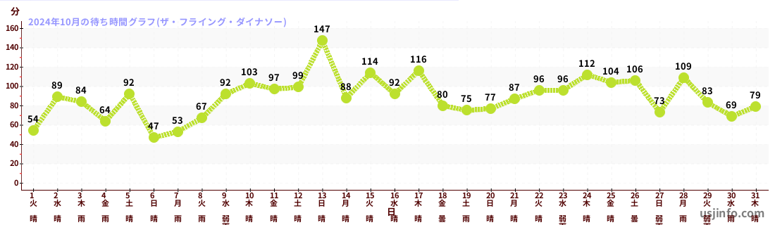 • ザ・フライング・ダイナソー$B$N(B2024年10月01日のの一日平均待ち時間