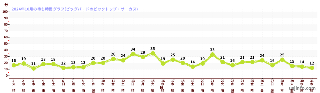 • ビッグバードのビックトップ・サーカス$B$N(B2024年10月01日のの一日平均待ち時間