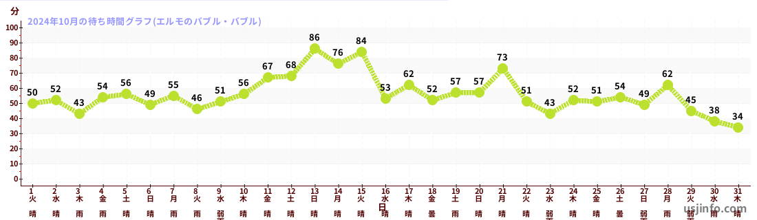 • エルモのバブル・バブル$B$N(B2024年10月01日のの一日平均待ち時間
