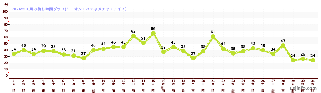 • ミニオン・ハチャメチャ・アイス$B$N(B2024年10月01日のの一日平均待ち時間