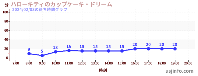 • ハローキティのカップケーキ・ドリーム$B$N(B2024年02月03日の待ち時間