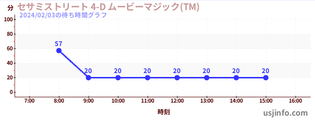 • セサミストリート 4-D ムービーマジック(TM)$B$N(B2024年02月03日の待ち時間