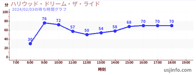• ハリウッド・ドリーム・ザ・ライド$B$N(B2024年02月03日の待ち時間