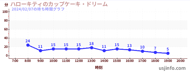 • ハローキティのカップケーキ・ドリーム$B$N(B2024年02月07日の待ち時間