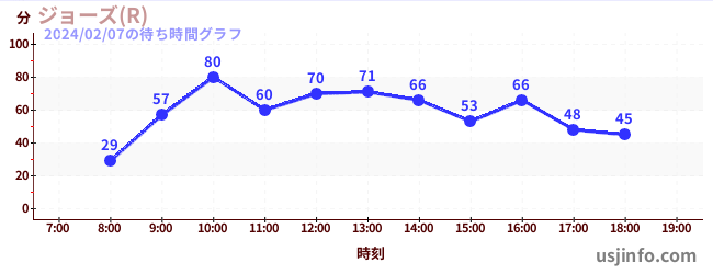• ジョーズ(R)$B$N(B2024年02月07日の待ち時間