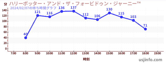 • ハリーポッター・アンド・ザ・フォービドゥン・ジャーニー™$B$N(B2024年02月07日の待ち時間