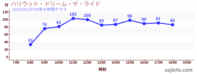 • ハリウッド・ドリーム・ザ・ライド$B$N(B2024年02月07日の待ち時間