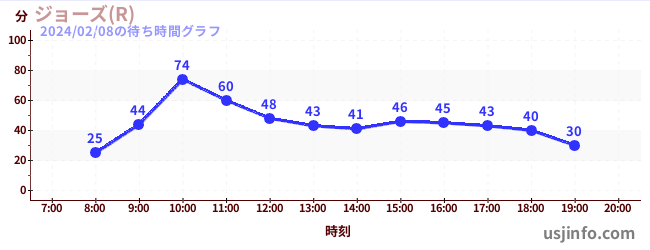 • ジョーズ(R)$B$N(B2024年02月08日の待ち時間