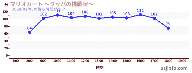 • マリオカート ~クッパの挑戦状~$B$N(B2024年02月08日の待ち時間