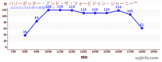 • ハリーポッター・アンド・ザ・フォービドゥン・ジャーニー™$B$N(B2024年02月08日の待ち時間