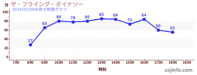 • ザ・フライング・ダイナソー$B$N(B2024年02月08日の待ち時間