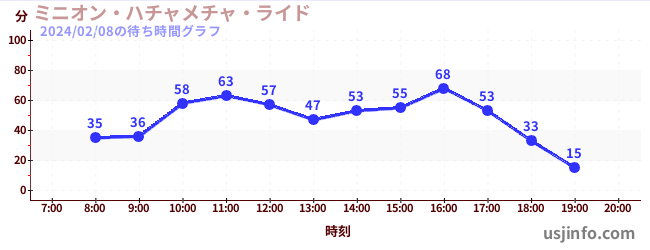• ミニオン・ハチャメチャ・ライド$B$N(B2024年02月08日の待ち時間
