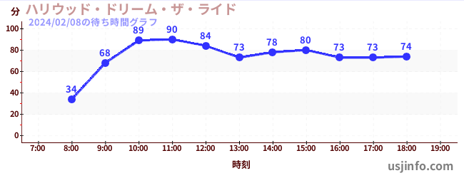 • ハリウッド・ドリーム・ザ・ライド$B$N(B2024年02月08日の待ち時間