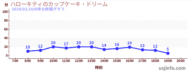 • ハローキティのカップケーキ・ドリーム$B$N(B2024年02月16日の待ち時間
