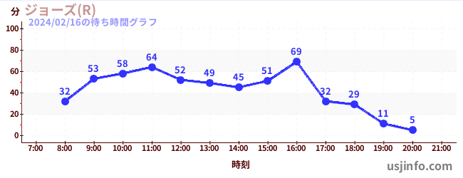 • ジョーズ(R)$B$N(B2024年02月16日の待ち時間