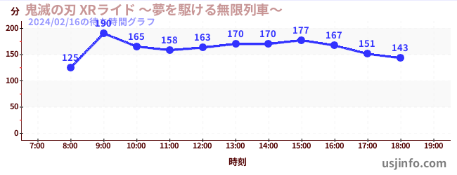 • 鬼滅の刃 XRライド$B$N(B2024年02月16日の待ち時間