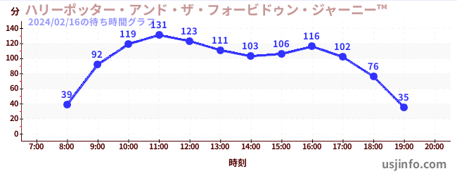 • ハリーポッター・アンド・ザ・フォービドゥン・ジャーニー™$B$N(B2024年02月16日の待ち時間