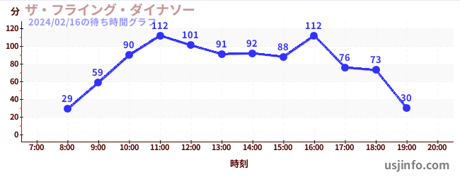 • ザ・フライング・ダイナソー$B$N(B2024年02月16日の待ち時間