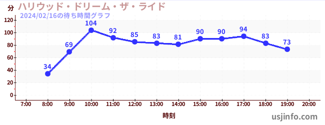 • ハリウッド・ドリーム・ザ・ライド$B$N(B2024年02月16日の待ち時間