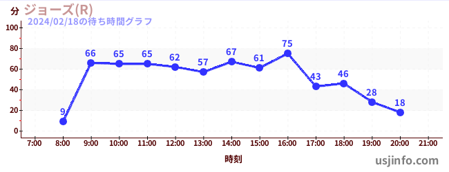 • ジョーズ(R)$B$N(B2024年02月18日の待ち時間