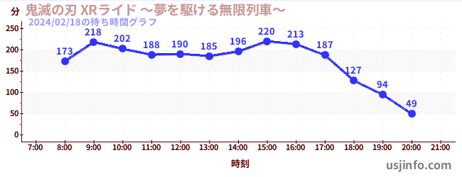 • 鬼滅の刃 XRライド$B$N(B2024年02月18日の待ち時間
