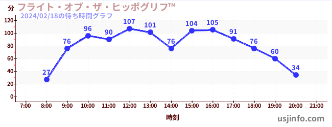• フライト・オブ・ザ・ヒッポグリフ™$B$N(B2024年02月18日の待ち時間